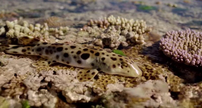 Wriggling their bodies and pushing their paddle-shaped fins against the floor, they prefer to travel like this even when the water is deep enough to swim in. Cartilaginous support within an Epaulette shark's fins is reduced and more separated than in other sharks, and it’s this that allows them to rotate their fins for use as limbs. Walking themselves across coral and out into tidal pools, one might worry about their ability to breathe on land. Alas, the Epaulette shark has outsmarted evolution once again.